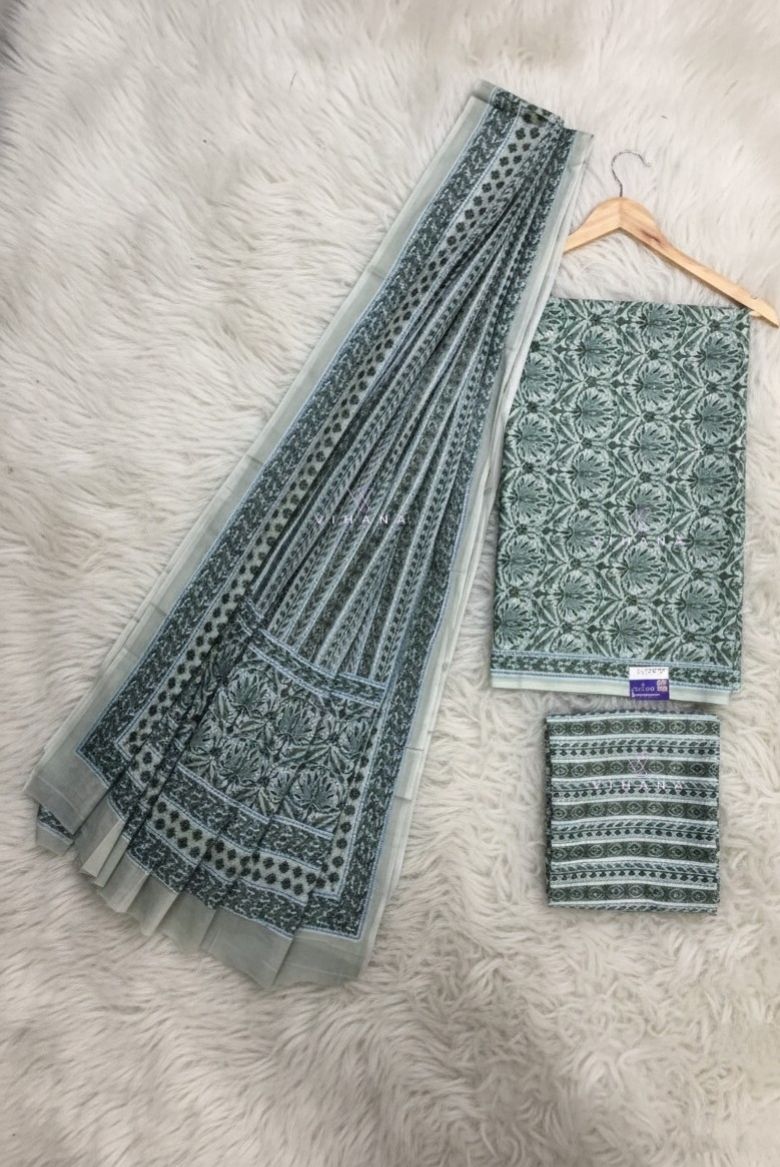 Soft Cotton Persian Print Salwar Suit Material – Green Floral Print