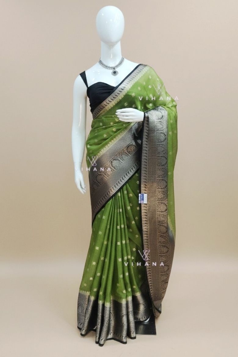 Parrot Green Semi Banarasi Silk Saree