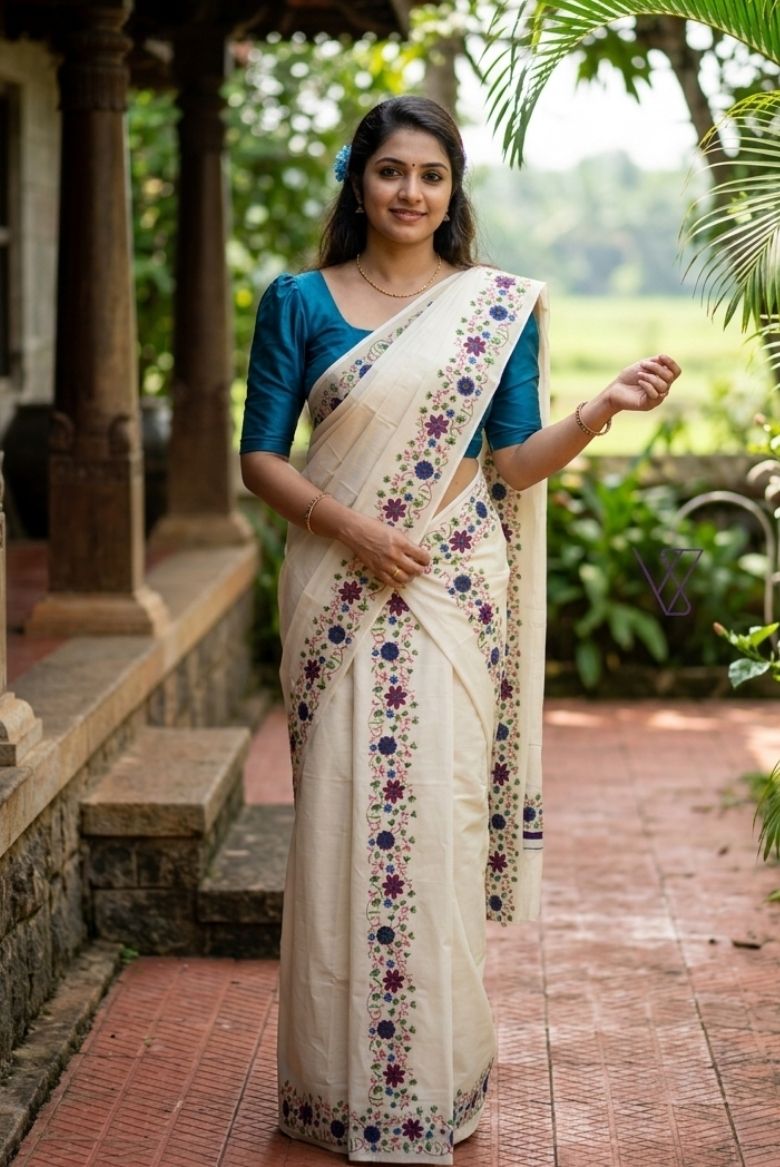 Lime Green Mul Mul Cotton Saree with Pink Floral Designs