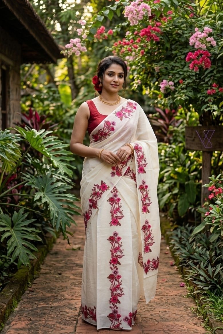 Pure Mul Cotton White Elegance with Sweet Pink Heart Embroidery