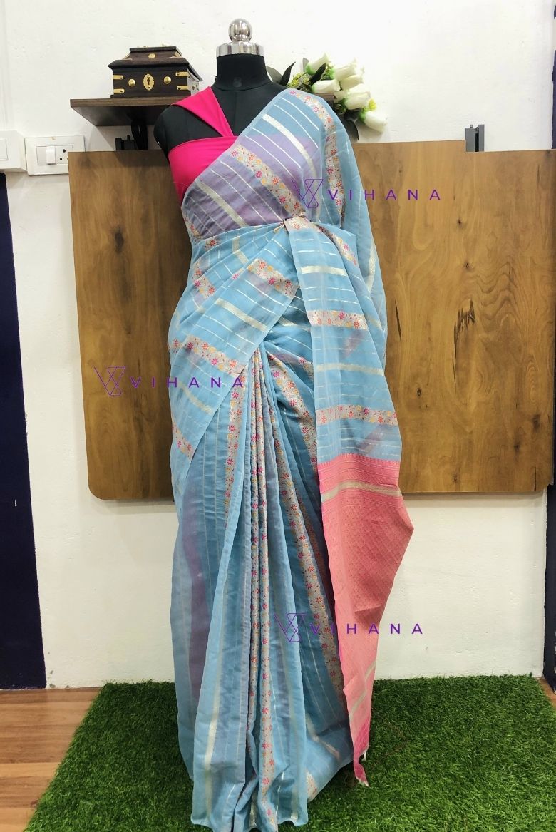 Multicolor Linen cotton mix Saree with leheriya print. Including Unstitched Blouse piece