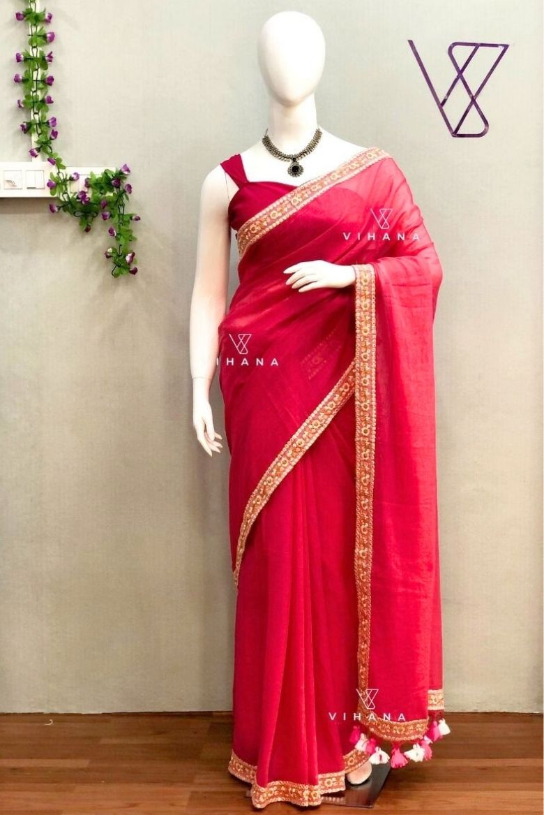 Pink Mul Cotton Saree with Embroidery Lace Work