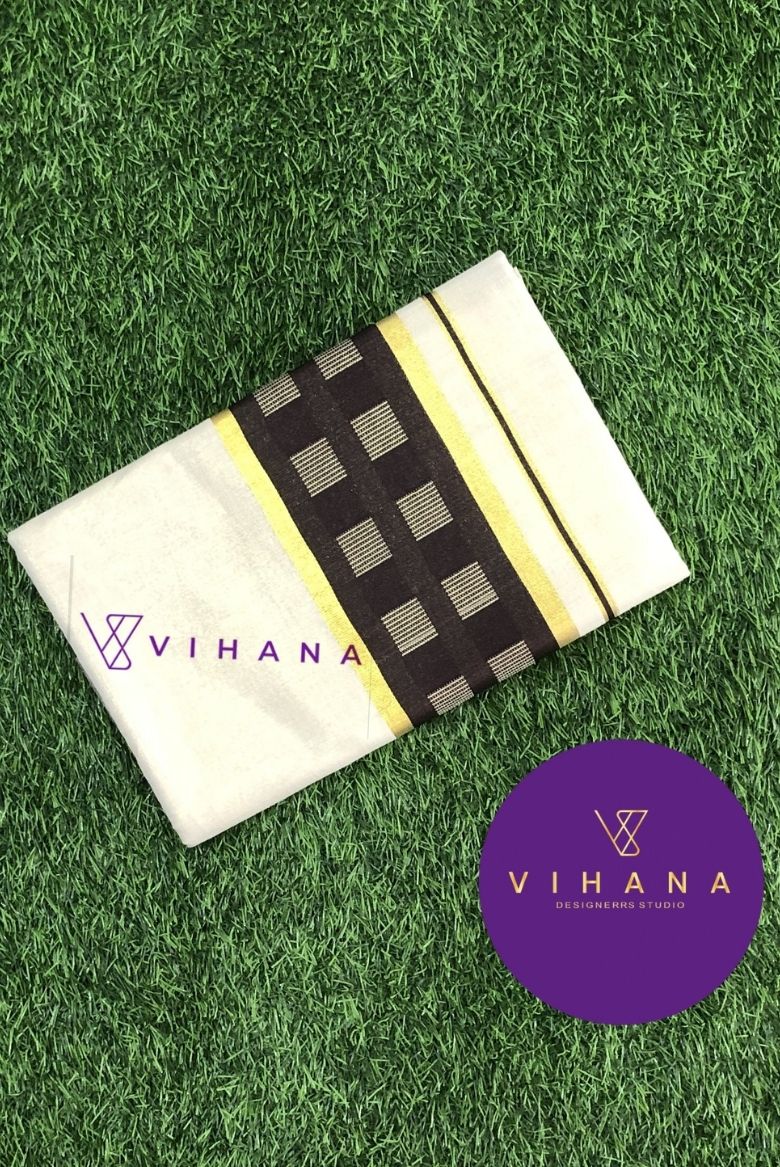 Kerala Golden Tissue Set Saree with Black Border