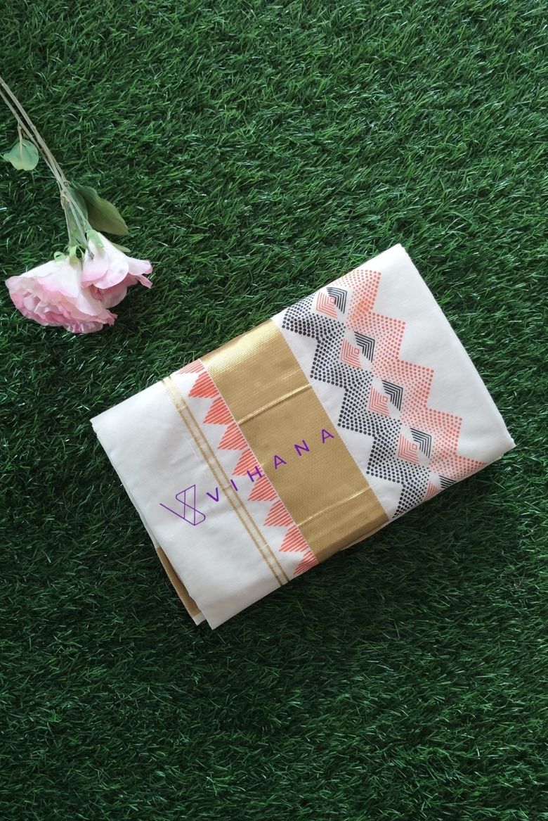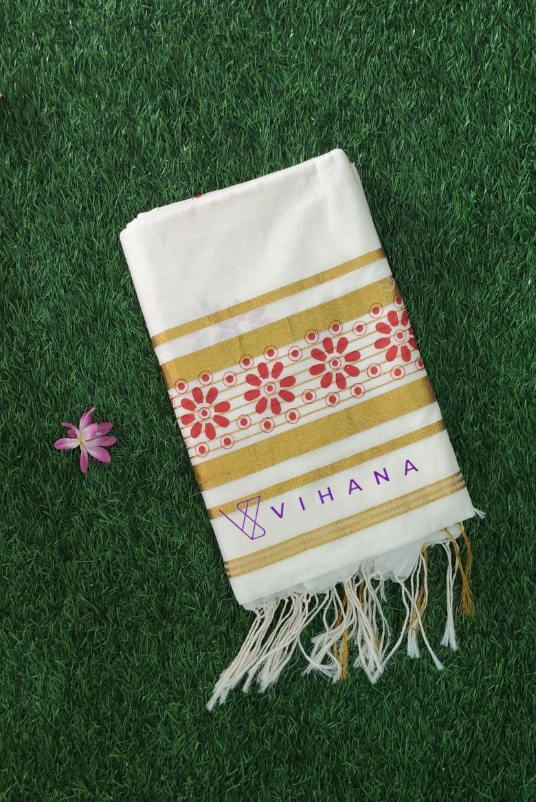 Handloom Kerala Cotton Lotus Jacquard Weaving Set Saree
