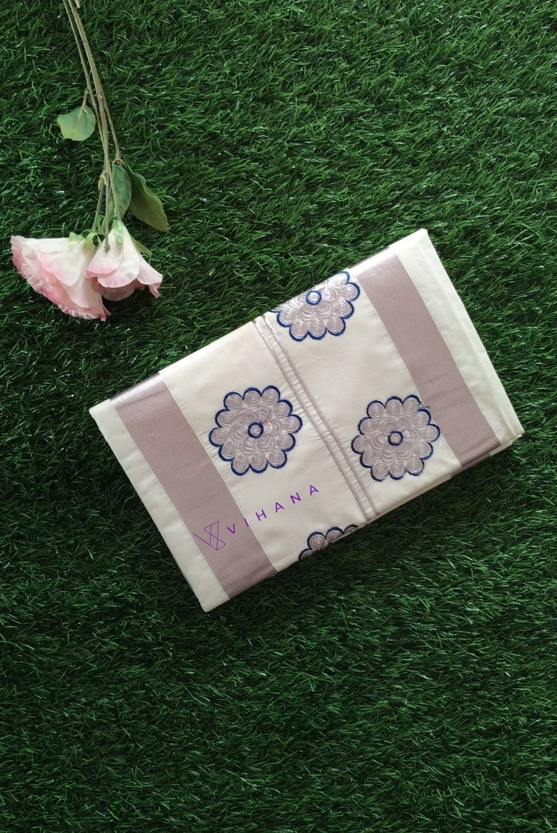 Beautiful Cotton Set Saree with Rose Gold Zari Border and Floral Embroidery