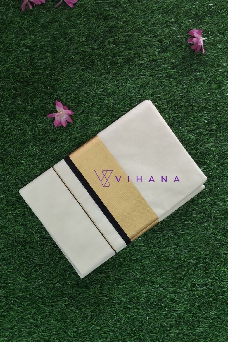Kerala Cotton Set Saree featuring Elegant Black and Golden Zari Borders