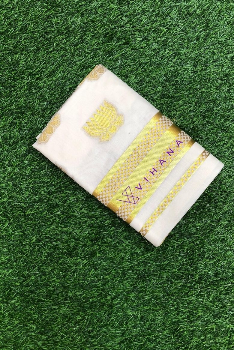 Kerala Handloom Heavy Jacquard Gold Design Set Saree