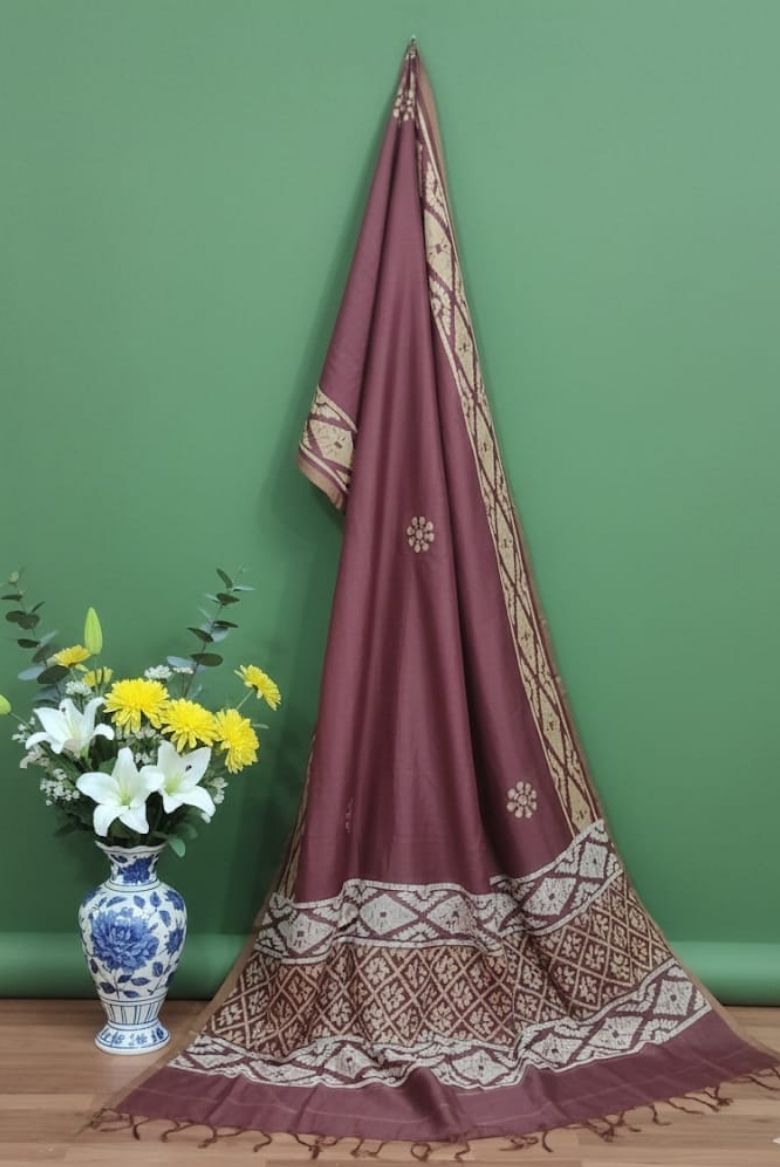 Be the first to review “Rusty Maroon Batik Print Maheswari Silk Suit Material” Cancel reply