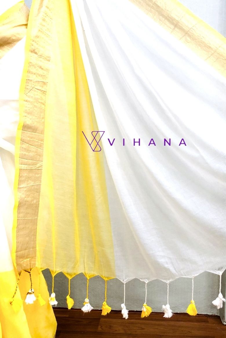 21 February 2026Pure 120 Count Half Dyed White and Yellow Mul Cotton Saree