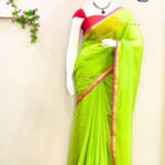 Parrot Green Mul Cotton Saree with Beautiful Lace Work Borders