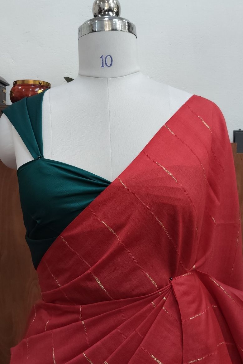 Bhagalpuri Kota Semi Tussar Bright Red Capsule Weaving Saree - Vihana