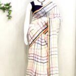 Aiswarya Laxmi Inspired White Mul Cotton Saree with Vibrant Multicolored Check Pattern