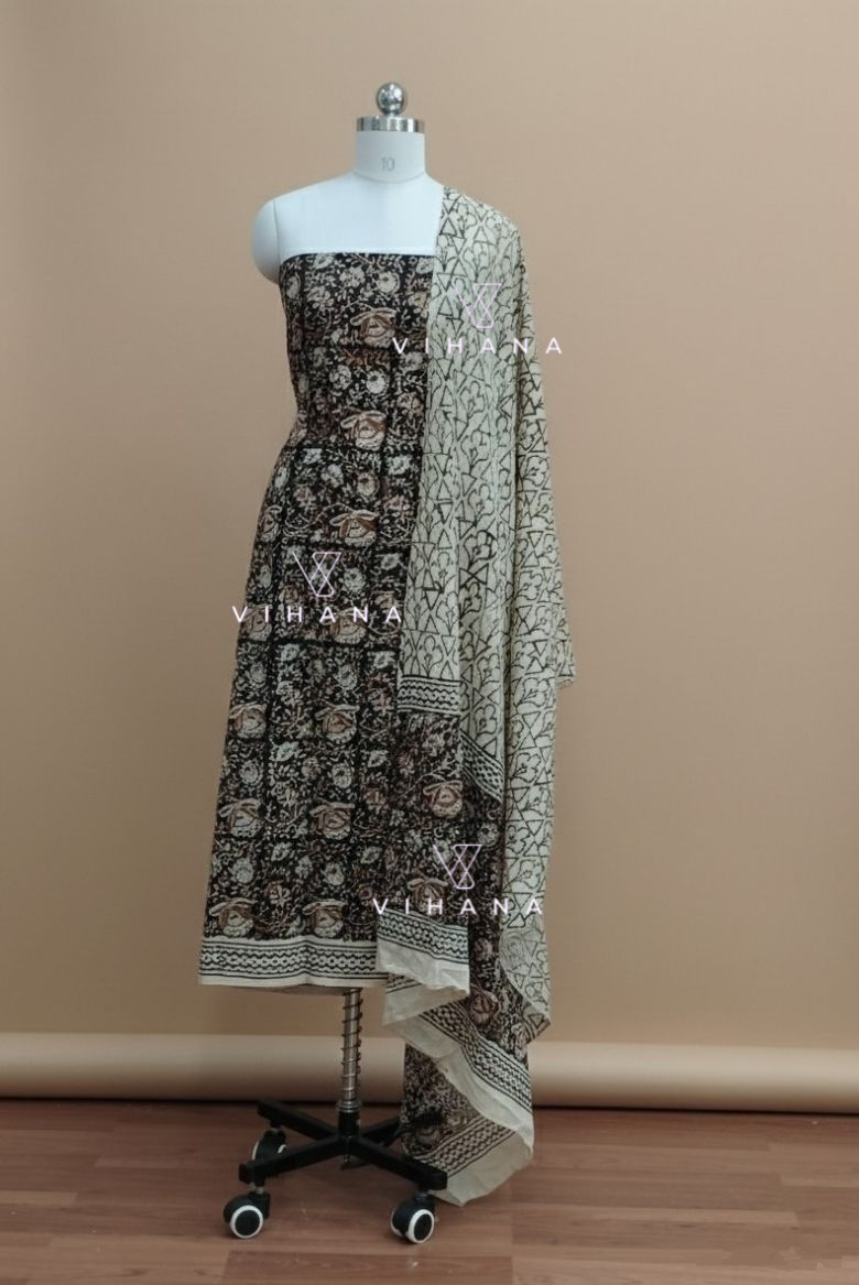 Discover our Bagru hand block print cotton salwar suit materials , hand crafted with traditional wooden blocks and natural -inspired motifs . Perfect for every day wear ,office styling and small occasions ,these unstitched suits offer breathable comfort with timeless ethnic charm .
