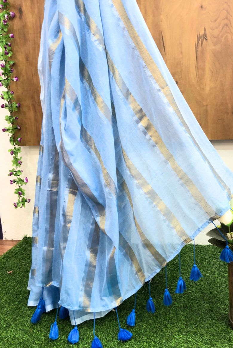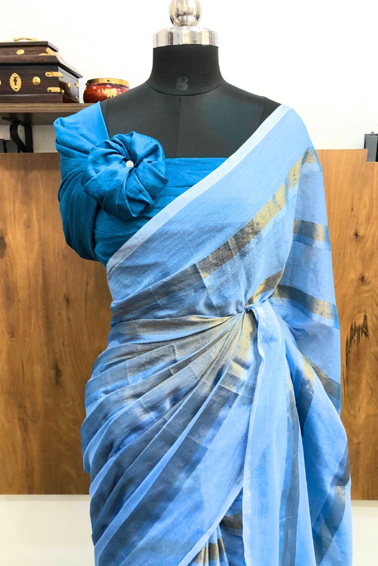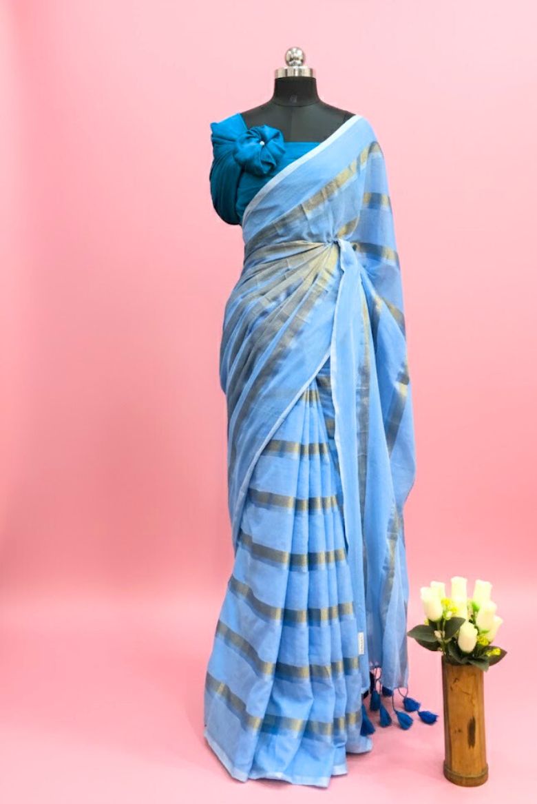 5 February 2026Blue 120 Count Pure Mulcotton Saree