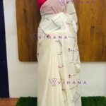 White 120 count Pure Mulcotton Saree