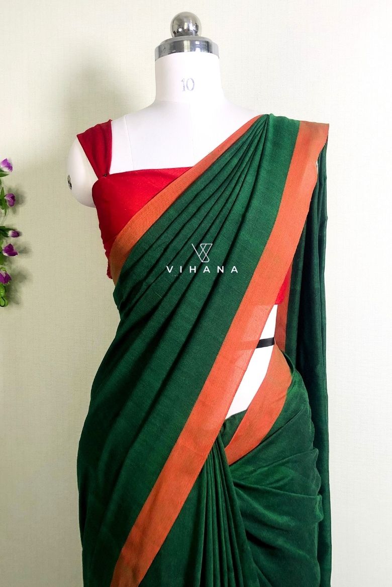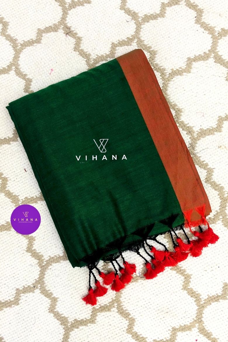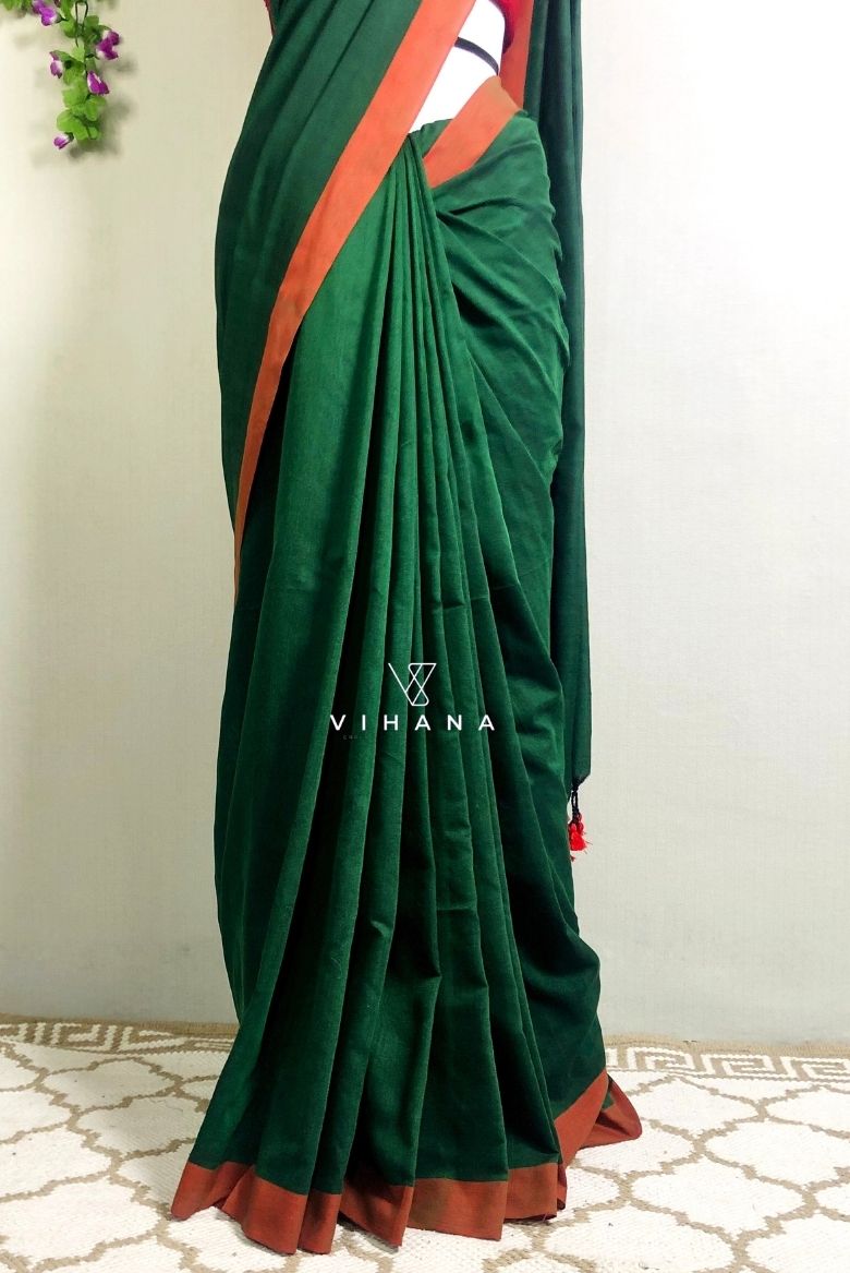 5 March 2026Bottle Green Khadi Cotton Saree with Red Orange Border