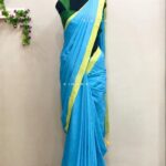 Sky Blue Khadi Cotton Saree with Lemon Green Border