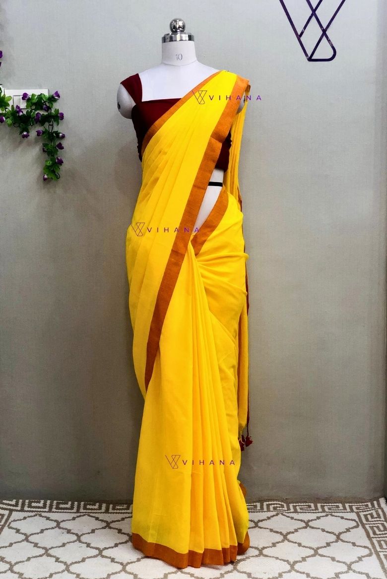 5 March 2026Bright Yellow Khadi Cotton Saree with Rust Orange Border