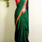 Bottle Green Khadi Cotton Saree with Red Orange Border