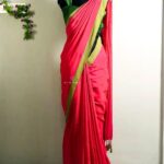 Soft Pink Khadi Cotton Saree with Green Border