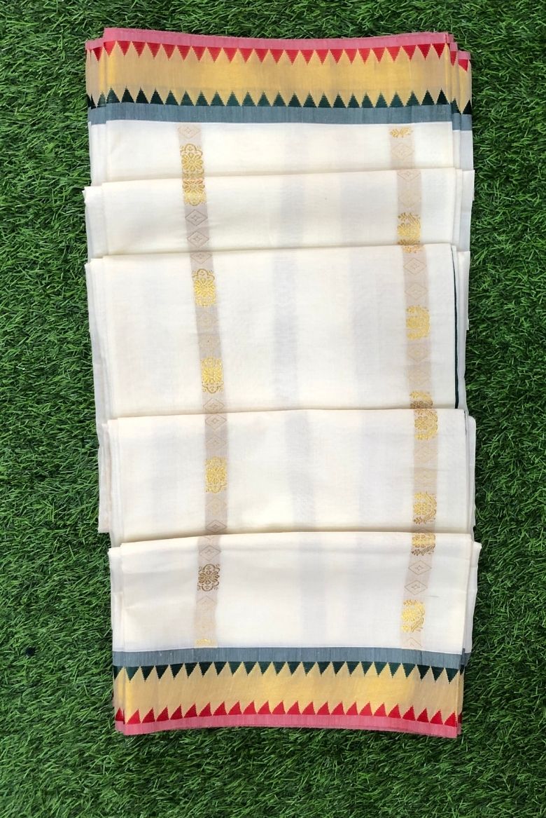 23 January 2026Classic Kerala Kasavu Set Saree with Multicolour Temple Border