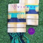 Traditional Tissue Cotton Set Mundu with Stripes and Lotus Design Borders