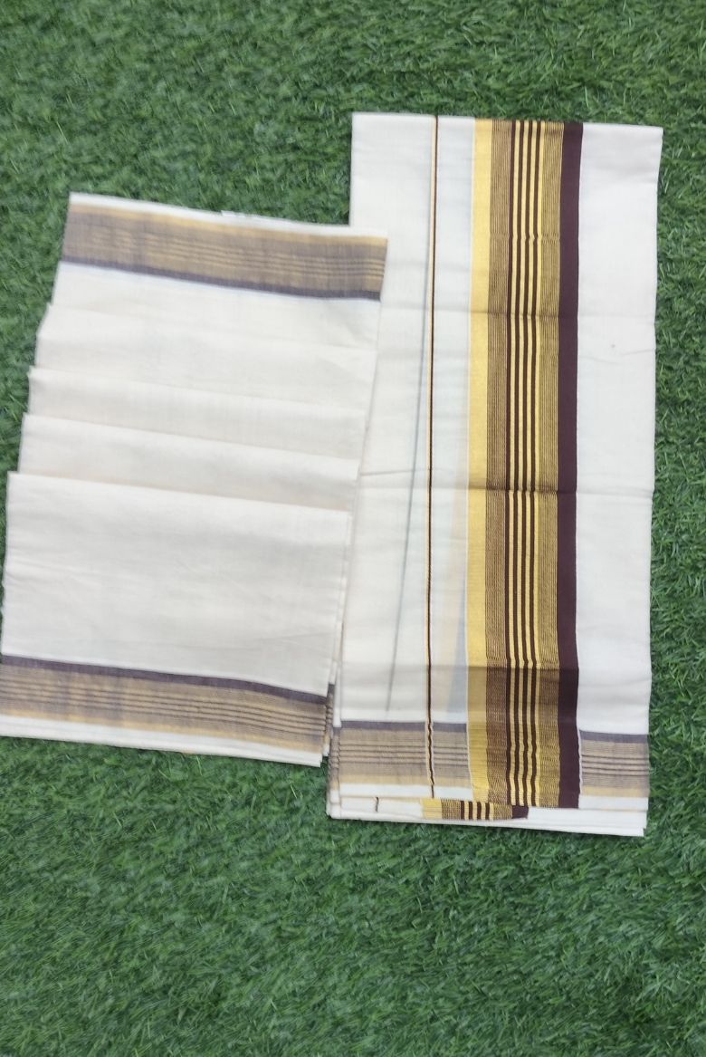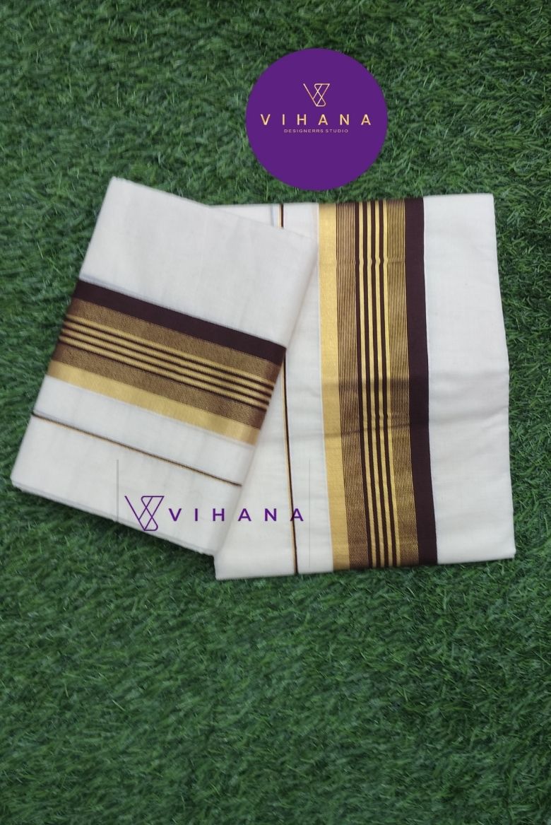 11 February 2026Classic Off-white Set Mundu with Golden and Brown Kasavu Border