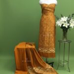 Premium Maheswari Silk Batik Print Salwar Suit – Mustard Yellow with Gicha Border