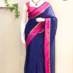 Elegant Blue Mul Cotton Saree with Pink and Golden Zari Borders