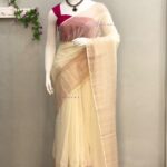 Cream Mul cotton Saree with Golden Stripes Border Design