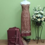 Premium Maheswari Silk Batik Print Salwar Suit – Dark Red with Gicha Border - Vihana
