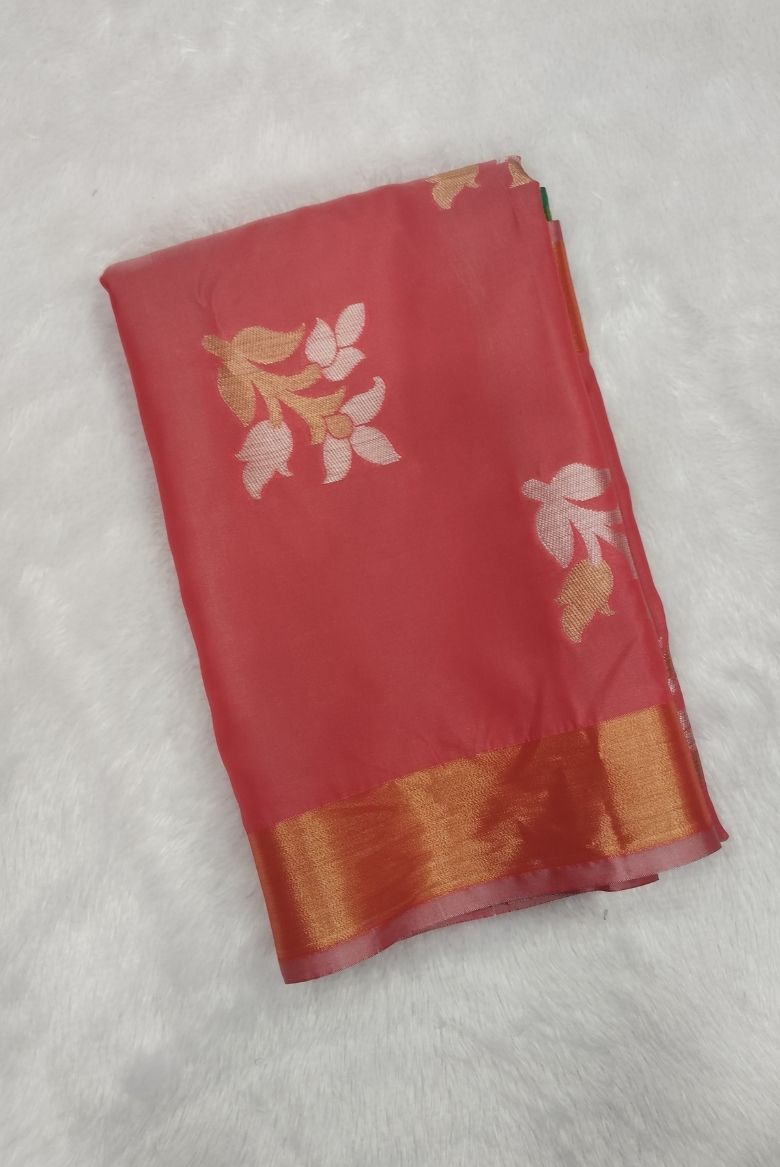 Orange color Banarasi Silk Saree with Unstiched Blouse piece