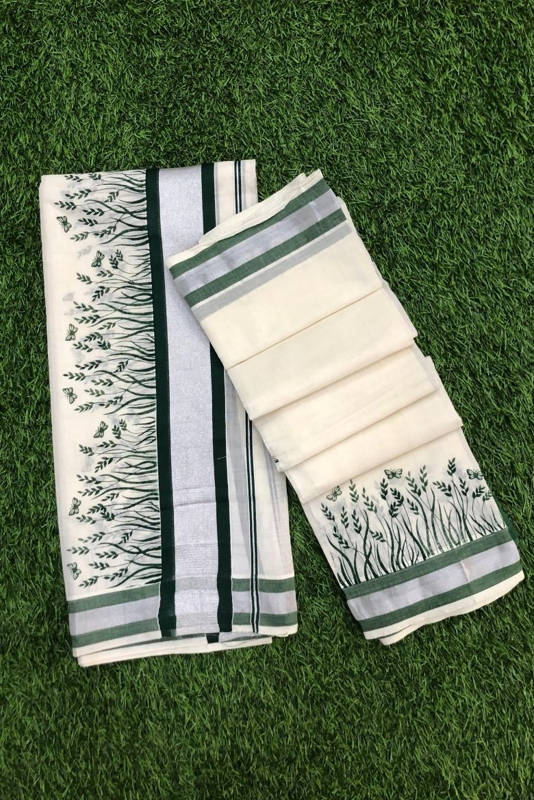 9 February 2026Elegant Cotton Set Mundu with Green Leaf Print