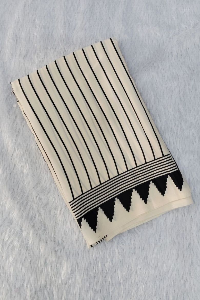 29 January 2026Elegant Off-White and Black Combination Semi Modal Crepe Silk Saree