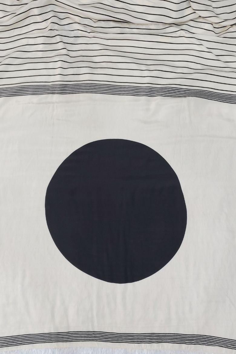 Be the first to review “Elegant Off-White and Black Combination Semi Modal Crepe Silk Saree” Cancel reply