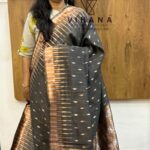 Greyish Black Cotton Linen Sareee