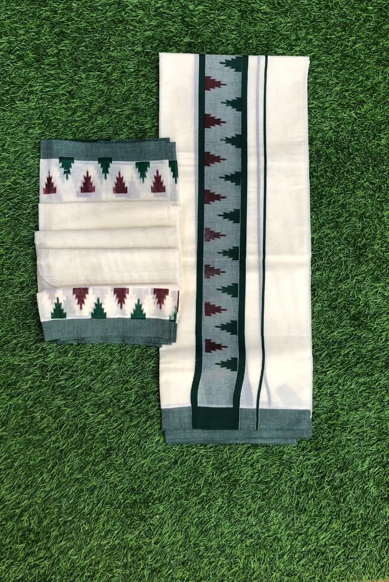 Kerala Cotton Set Mundu with Bottle Green Kara