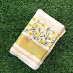 Traditional Kerala Cotton Set Saree- Kanikonna Floral Embroidery