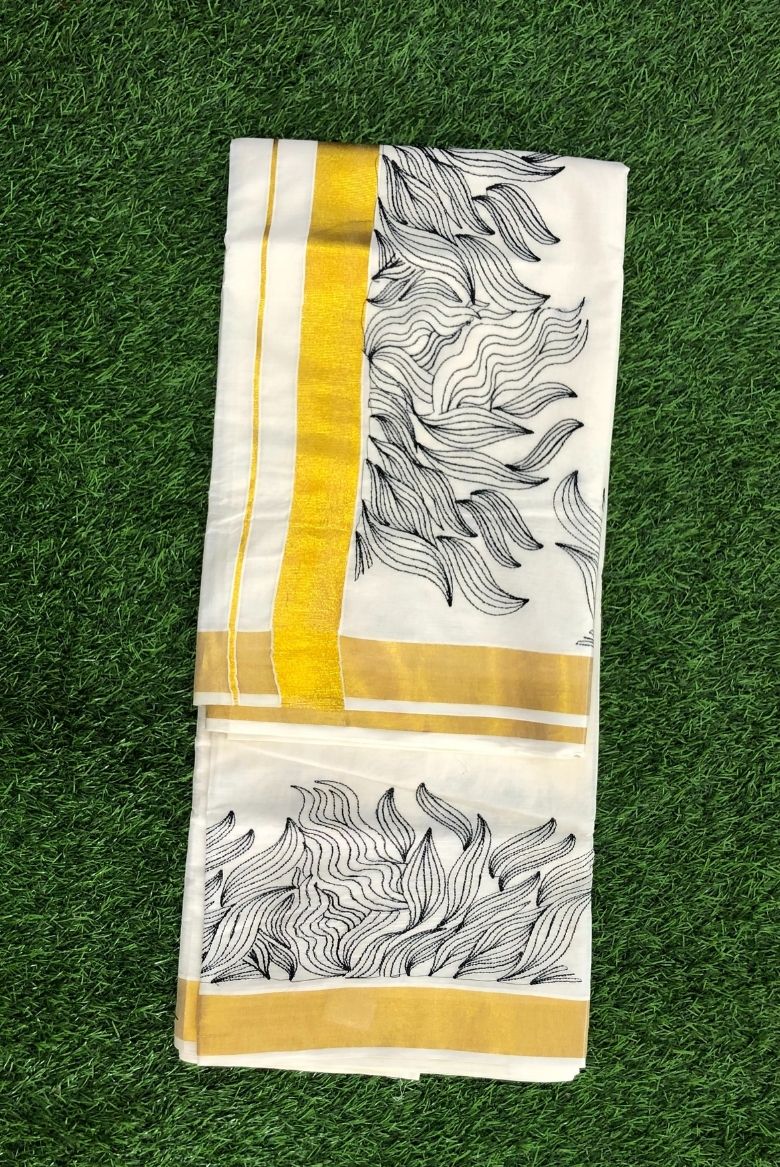 23 January 2026Kerala Set Saree with Black Thread Embroidery Designs