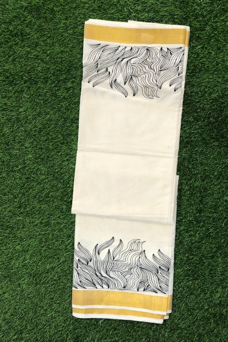 Be the first to review “Kerala Set Saree with Black Thread Embroidery Designs” Cancel reply