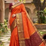 Orange Banarasi Khatan Silk Saree