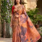 Light Blue Red Combination Khatan Semi Silk Marble Print Saree