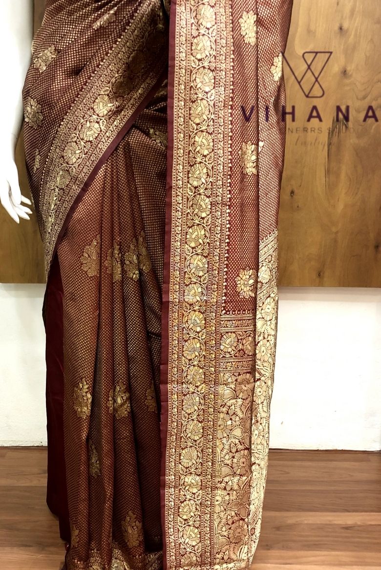13 December 2025Maroon colour Banarasi silk saree