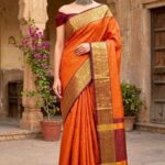 Burnt Orange Banarasi Katan Silk Check Design Saree with Burgundy Border