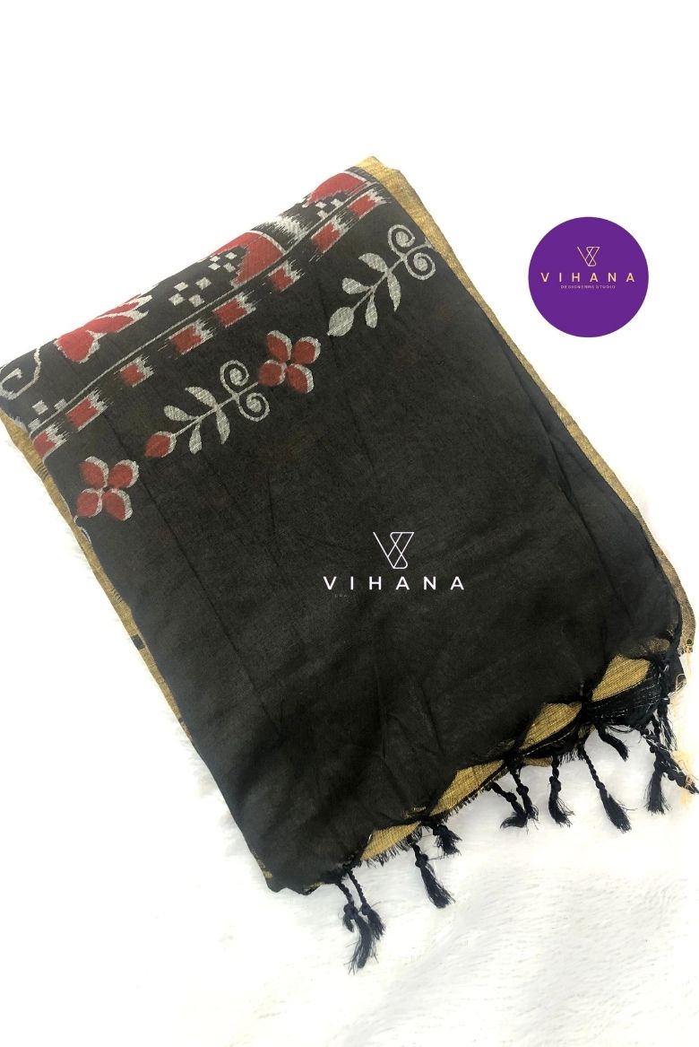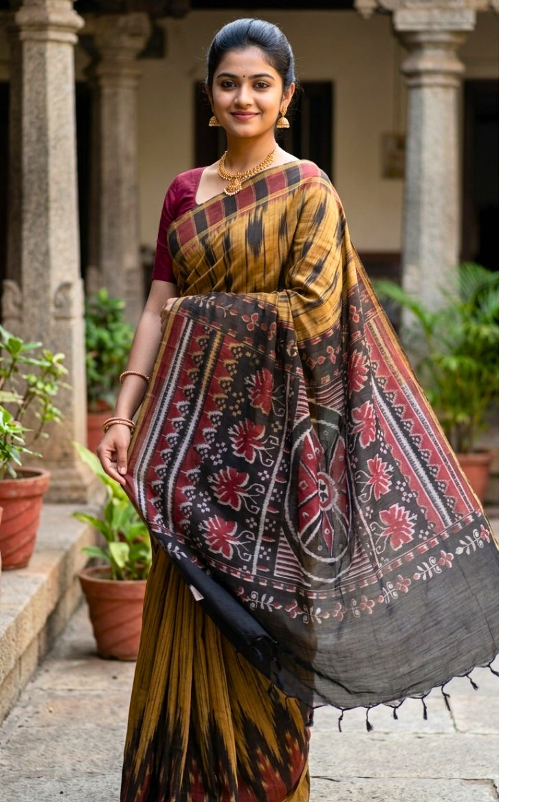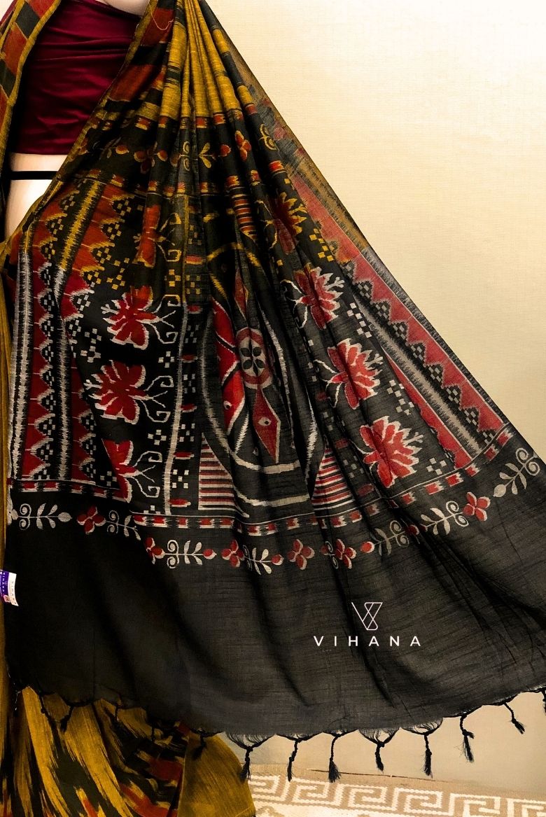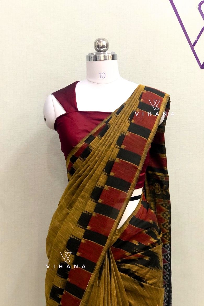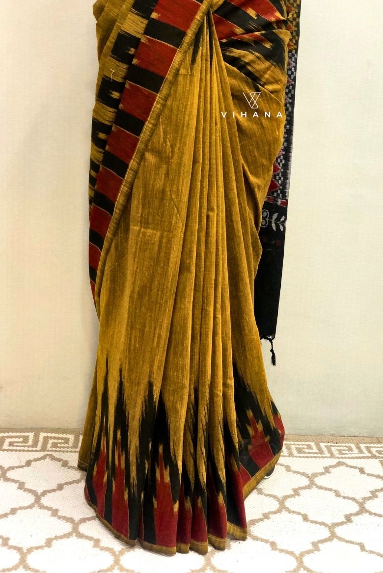 Mustard Yellow Sambalpuri Cotton Saree - Vihana