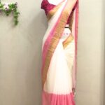 18 February 2026Off white Mul Cotton Saree with Pink and Golden Zari Stripe Borders