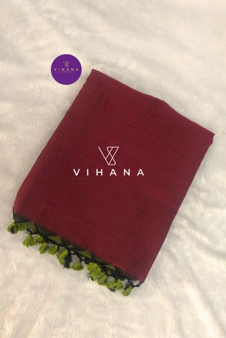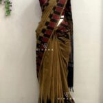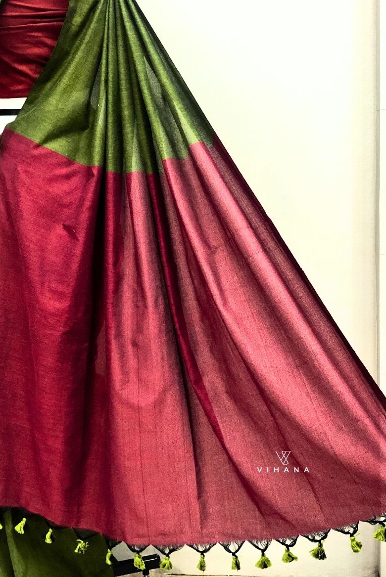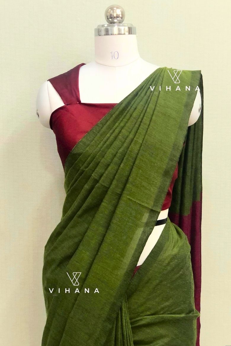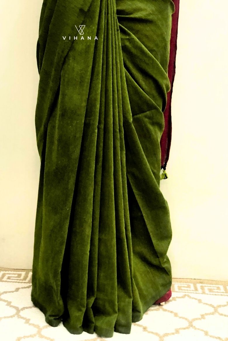 Olive Green Khadi Cotton Saree - Vihana