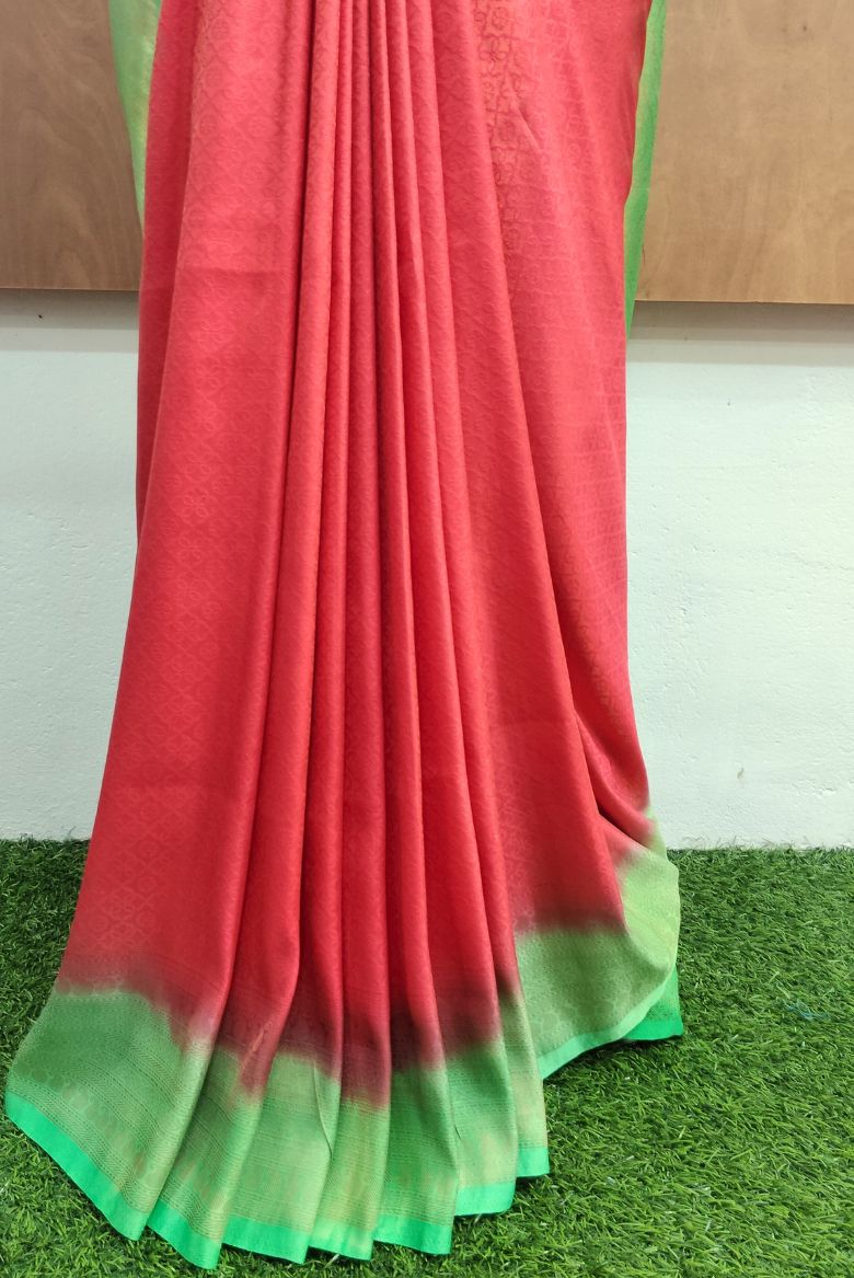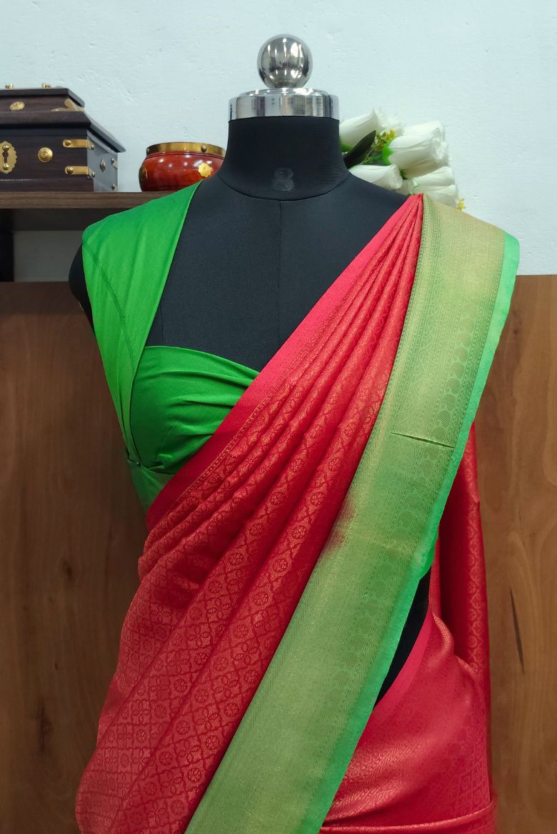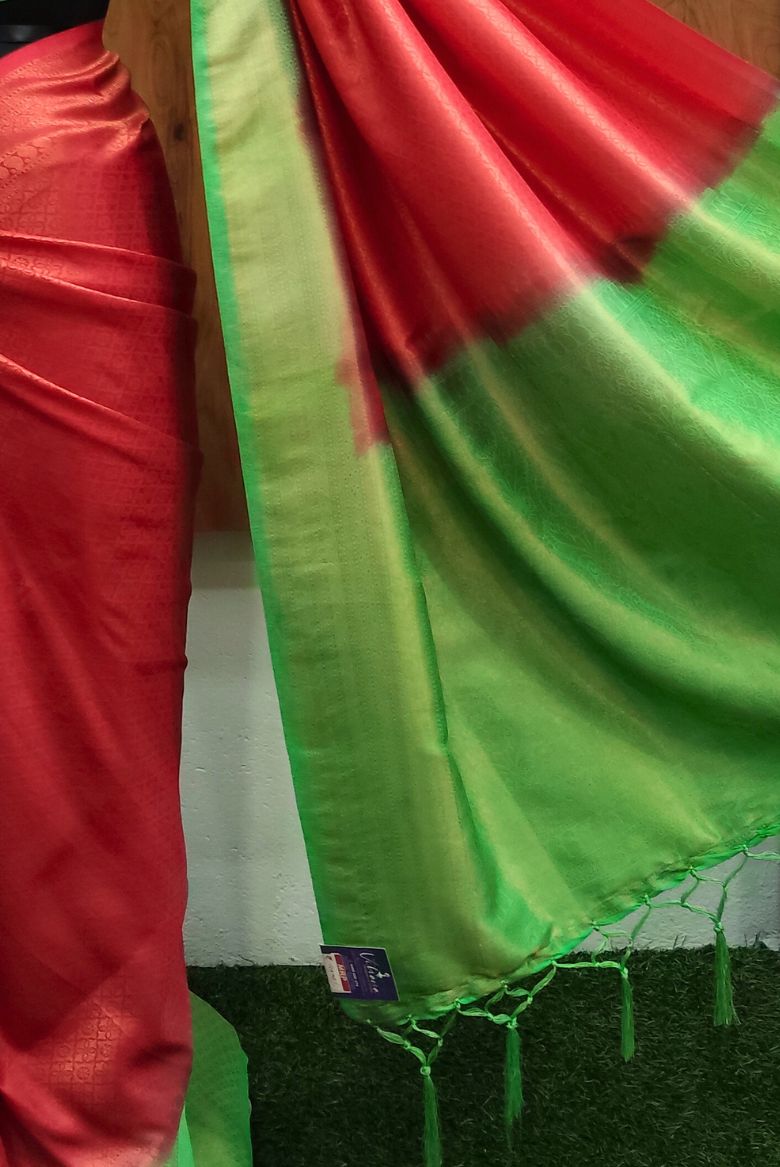 5 February 2026Perfect Red and Green Soft Semi Silk Saree