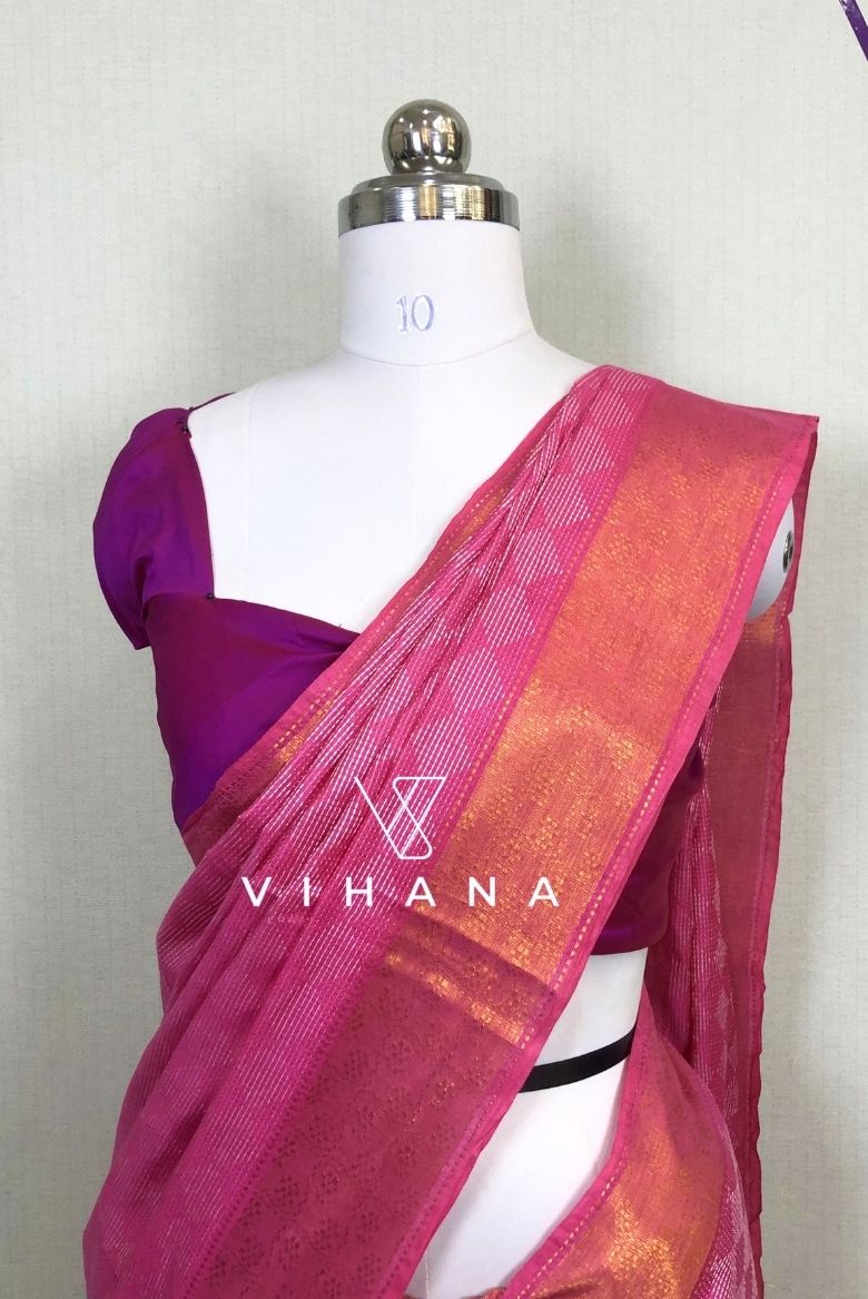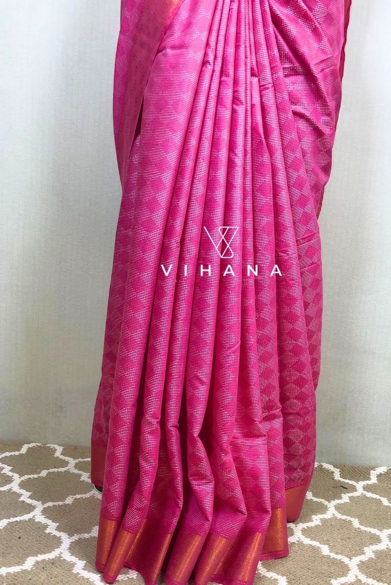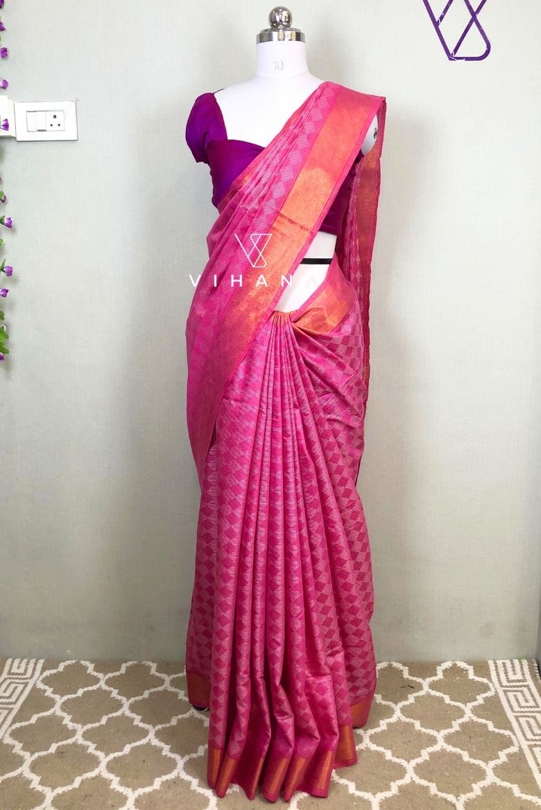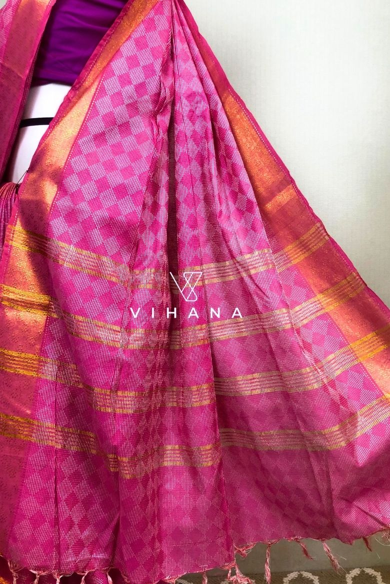 Pink Kota Silk Jaquard Weaving Bhagalpur Saree - Vihana