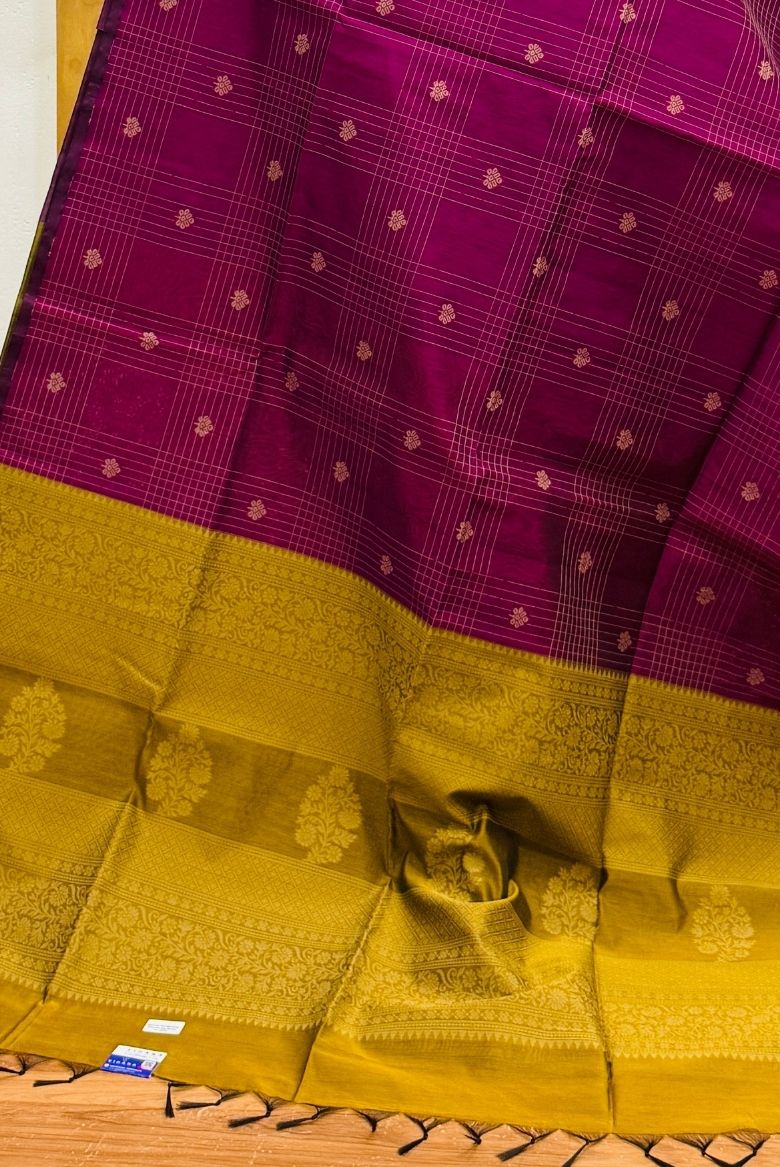 8 January 2026Wine Purple with Mustard Gold Contrast Pallu Premium Pure Handloom Cotton Saree